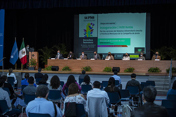 Previo a la primera mesa se realizó la bienvenida e inauguración de la decimocuarta edición del Foro de Derechos Humanos del SUJ, un espacio que "nos coloca de manifiesto el reto que enfrentamos ante la grave crisis de violaciones sistemáticas a los derechos humanos en México. Esta crisis nos obliga a una profunda reflexión sobre qué significa ser una universidad jesuita ante esa realidad", dijo Luis Arriaga Valenzuela, SJ, Rector del ITESO.